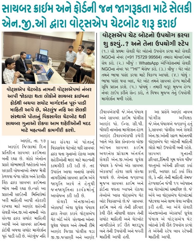 Selkey NGO, established under Selkey Cyber Security Pvt. Ltd., is dedicated to combating the rise of cyber fraud and creating widespread digital awareness. The initiative focuses on building a secure digital environment by conducting workshops, seminars and awareness campaigns across schools, colleges, institutions and organizations, educating individuals about online threats and safe practices. Beyond education, the NGO also supports and guides victims of cybercrime through recovery processes, offering lawful solutions and assistance. With impactful initiatives, including awareness programs at Cambay ONGC and other successful projects, Selkey NGO continues to lead efforts in promoting cybersecurity awareness. Its vision is to create a safer, more informed society where individuals can confidently navigate their digital lives.